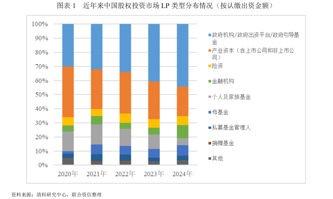 LP类型一般包括机构LP和个人LP,机构LP常见类型包括政府引导基金、政府机构/政府出资平台、保险资金、银行及信托、上市公司、非上市公司等;个人LP主要指高净值人群。近年来,在中国经济结构转型、科技创新驱动及政策体系完善的多重背景下,股权投资LP市场经历了从规模扩张到结构优化的关键转变;从发展趋势来看,政府类资本(含政府引导基金、政府机构/政府出资平台)、产业企业(含上市公司和非上市公司)、金融机构(含银行、保险、信托等)三类LP占比整体呈增长趋势。2025年以来,股权投资市场逐步回暖,在政策引导下,国资主导力量进一步强化、产业资本调整以及金融资本有序入市等,共同塑造了当前LP市场的新格局。